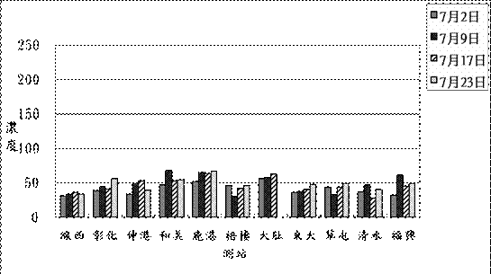 為進行每月空氣品質探討,首先將中部地區各測站分為台中縣(6站)、台中市(3站)、彰化縣(8站)、南投縣(4站)四個分區(含環保署、台電測站),再依據環保署標準將每個分區每天取最大前三站之平均,若PSI > 100,當天則判定為不良,PSI < 50則為良好,介於50至100之間則為普通。若當區當月中不良日數大於2天(環保署PSI > 100之百分比民國95年中期期程3 ﹪,30 × 3 ﹪≒ 1天),本月則判為不良;若本月普通日數大於優良日數本月則判斷為普通;若優良日數大於普通日數,本月空氣品質則判斷為優良。依據此標準七月份台中市、台中縣與南投地區的空氣品質均屬於普通情況,而彰化則屬於優良情況。