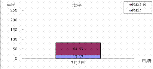 為進行每月空氣品質探討,首先將中部地區各測站分為台中市(縣)(7站)、台中市(3站)、彰化縣(8站)、南投縣(4站)四個分區(含環保署、台電測站),再依據環保署標準將每個分區每天取最大前三站之平均,若PSI > 100,當天則判定為不良,PSI < 50則為良好,介於50至100之間則為普通。若當區當月中不良日數大於1天(環保署PSI > 100之百分比民國100年長期期程1.5 %,31 ×1.5 %≒0.465天),本月則判為不良;若本月普通日數大於優良日數本月則判斷為普通;若優良日數大於普通日數,本月空氣品質則判斷為優良。依據此標準七月份的空氣品質台中市的空氣品質屬於優良情況,台中市(縣)和南投的空氣品質屬於普通情況,而彰化的空氣品質屬於不良情況。