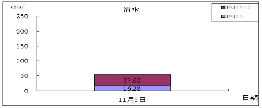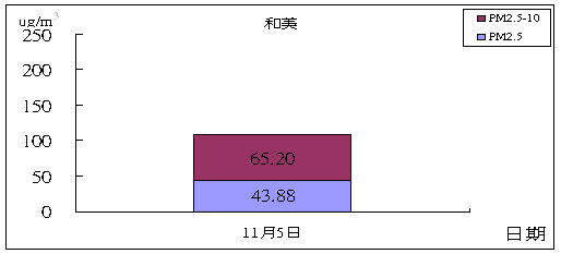 由十一月份等濃度差值圖可看出2012年與(2007~2011)年平均值之比較:十一月份氮氧化物濃度在中部地區皆呈改善情況,約為10 ppb。二氧化硫濃度在鹿港及清水一帶惡化約0.5 ppb左右,其他地區呈改善或持平。PM10濃度在整個中部地區呈持平或改善情況,最大可至30 μg/m3左右。PM2.5 在中部地區大多呈現持平現象。臭氧小時最大值在中部地區大部分呈現惡化的現象。