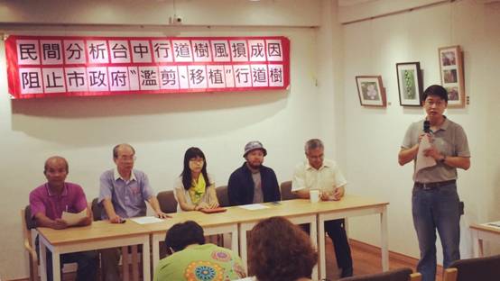 江義雄副理事長參加「民間分析台中行道路風損成因阻止市政府濫剪、移植行道樹記者會」