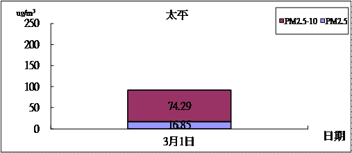 6. 由3月份中部地區環保署、台電空氣品質測站空氣污染指標統計表看出,中部地區在3月5日超過O3 AQI限值共有1站(9/30);中部地區在3月5日超過PM10限值共有0站 (0/28) ;中部地區在3月5日超過PM2.5限值共有29站(26/30)。