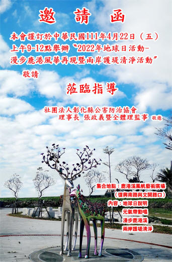 行文縣府水利資源處,函請同意派員解說鹿港溪風華再現。2/18 張理事長及歐婉麗幹事前往台中商銀辦理本會負責人印鑑變更案