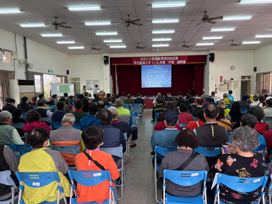 3/14 張理事長率理監事志工40人,前往大里塗城社區活動中心,參加台中電廠環境空氣品質平行監測113年年報說明會。
