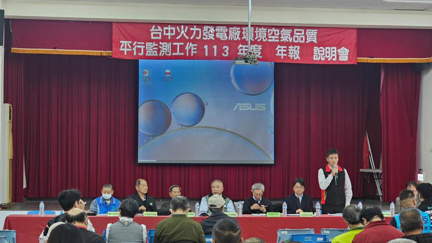 八、3月14日在台中市大里區塗城社區活動中心召開台中火力發電廠環境空氣品質平行監測工作113年年報說明會。