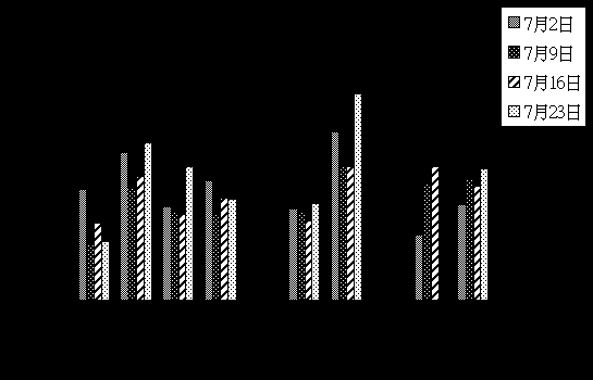 七月份的臭氧的小時最大濃度值中部地區皆低於30ppb。