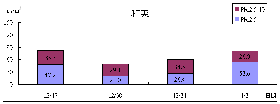 (參考美國環保署的標準PM 2.5日均值為60 mg / m3 )