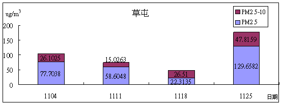 5.本月和美、草屯、清水、太平四站PM 2.5之採樣結果。