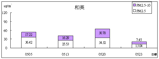 5.本月和美、草屯、清水、太平四站PM 2.5之採樣結果。