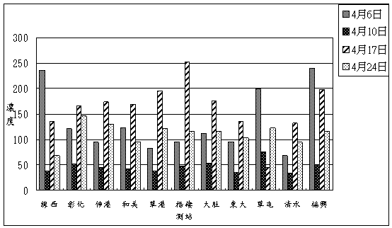 1天),本月則判為不良;若本月普通日數大於優良日數本月則判斷為普通;若優良日數大於普通日數,本月空氣品質則判斷為優良。依據此標準四月份台中縣市、彰化及南投地區的空氣品質均屬於不良情況。