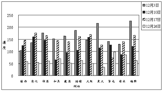 5.十二月和美、草屯、清水、太平四站PM 2.5之採樣結果。