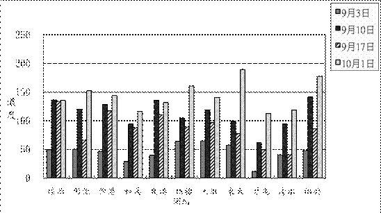 由九月份等濃度差值圖( 9-47 ~ 9-50)可看出2007年與2006年平均值之比較:由9-47頁之圖可知,九月份氮氧化物濃度在清水一帶呈惡化的現象,惡化約10 ppb;但而在彰化縣為改善的現象,改善約10 ppb,其它中部地區則為持平之情況。由9-48頁之圖可以看出二氧化硫濃度在中部地區除沙鹿一帶呈現惡化3 ppb外,其它多呈改善及持平的現象。由圖9-49頁之圖可看出PM10濃度在整個中部地區皆呈現惡化的現象,惡化幅度約5~30 μg/m3左右9-50頁之圖中可看出臭氧小時最大值在中部地區呈現惡化或持平的現象,惡化情況約為10 ppb左右。