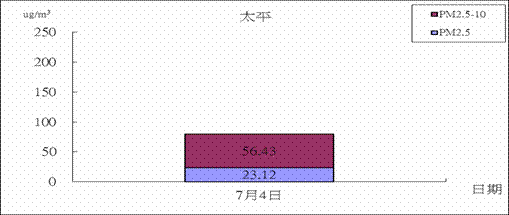 為進行每月空氣品質探討,首先將中部地區各測站分為台中縣(6站)、台中市(3站)、彰化縣(8站)、南投縣(4站)四個分區(含環保署、台電測站),再依據環保署標準將每個分區每天取最大前三站之平均,若PSI > 100,當天則判定為不良,PSI < 50則為良好,介於50至100之間則為普通。若當區當月中不良日數大於1天(環保署PSI > 100之百分比民國100年長期期程1.5 ﹪,31 ×1.5 ﹪≒ 0.465天),本月則判為不良;若本月普通日數大於優良日數本月則判斷為普通;若優良日數大於普通日數,本月空氣品質則判斷為優良。依據此標準七月份台中市的空氣品質屬於不良情況,台中市(縣)、彰化地區的空氣品質屬於優良情況,南投地區的空氣品質屬於普通情況。