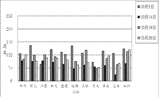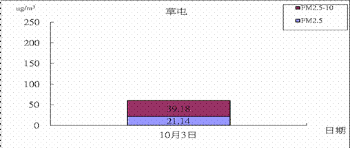 為進行每月空氣品質探討,首先將中部地區各測站分為台中縣(6站)、台中市(3站)、彰化縣(8站)、南投縣(4站)四個分區(含環保署、台電測站),再依據環保署標準將每個分區每天取最大前三站之平均,若PSI > 100,當天則判定為不良,PSI < 50則為良好,介於50至100之間則為普通。若當區當月中不良日數大於1天(環保署PSI > 100之百分比民國100年長期期程1.5 ﹪,31 ×1.5 ﹪≒ 0.465天),本月則判為不良;若本月普通日數大於優良日數本月則判斷為普通;若優良日數大於普通日數,本月空氣品質則判斷為優良。依據此標準十月份台中市的空氣品質屬於不良情況,而台中市(縣)、彰化及南投地區的空氣品質屬於普通情況。