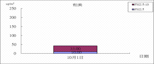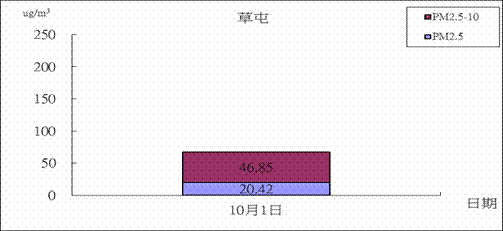 為進行每月空氣品質探討,首先將中部地區各測站分為台中市(縣)(7站)、台中市(3站)、彰化縣(8站)、南投縣(5站)四個分區(含環保署、台電測站),再依據環保署標準將每個分區每天取最大前三站之平均,若PSI > 100,當天則判定為不良,PSI < 50則為良好,介於50至100之間則為普通。若當區當月中不良日數大於1天(環保署PSI > 100之百分比民國100年長期期程1.5 %,31 ×1.5 %≒0.465天),本月則判為不良;若本月普通日數大於優良日數本月則判斷為普通;若優良日數大於普通日數,本月空氣品質則判斷為優良。依據此標準十月份的空氣品質整個中部地區為不良狀況。