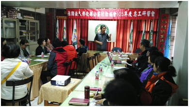 1/09 本會辦理105年度志工研習,共有志工30人參加。晚上邀請全體新舊理監事、全體新舊志工,在濠城餐廳舉辦年終餐宴。