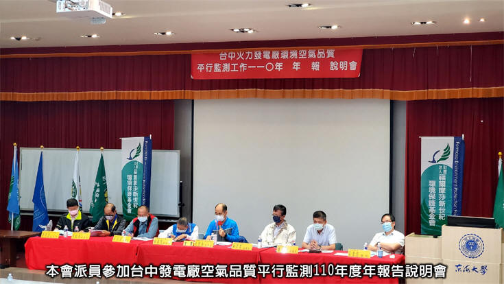 03/11 上午09:00本會林清茂理事長偕同理監事等15人,出席「台中火力發電廠空氣品質平行監測工作110年度年報說明會」。地點:東海大學省政研究大樓大會議室(臺中市東海大學1175號)