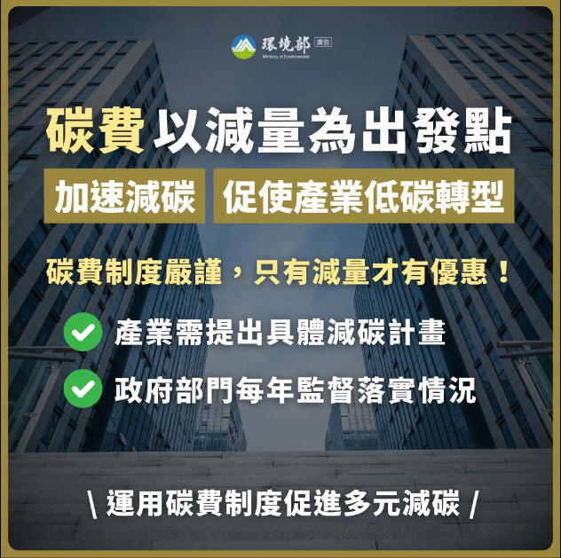 環境部在本年4月29日已預告碳費徵收三項配套子法草案,歡迎各界提供相關的建議或意見,該部已與經濟部共同辦理7場說明會向碳費收費對象說明碳費徵收的三項子法草案內容,近期也將邀請關心碳費制度的民間團體,接續辦理碳費子法草案的說明會,以便蒐集各界對於三項子法草案之意見與建議。