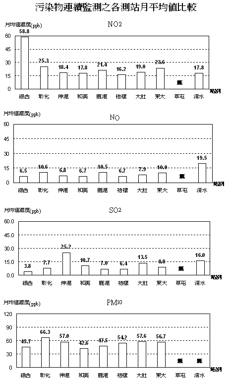 1.本月份十個測站NOx與SO