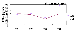 溪心壩之牧草採樣期間為2008年4月和5月,共計有2個分析資料,如表6.9所示。樣本分析戴奧辛濃度分別為3.811和4.937 pg /g,平均為4.374 pg /g。在戴奧辛毒性當量(12 %的含水率)部份,樣本換算毒性當量濃度結果分別為0.408和0.386 pg WHO-TEQ/g,平均毒性當量濃度為0.397 pg WHO-TEQ/g。